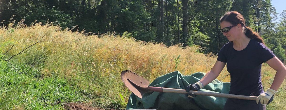 Am Samstag hat der erste Aktionstag stattgefunden. Mit ca. 10 Personen konnten wir den Tag sehr produktiv aber auch spassig gestalten. Neben einigen Aufgaben im Garten - von Jäten, zu Gurken und Basilikum pflanzen, Beetvorbereitung für die Federkohle, mulchen etc - gruben drei Tüchtige eine schöne Plattform in den Hang zwischen den Obstbäumen. Da kann in Zukunft die Aussicht aufs Gemüse und das Bütikofental genossen werden. Ausserdem soll dieser Platz auch als Veranstaltungsort dienen.